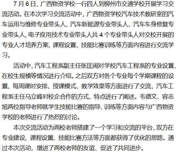 立足优化 加强交流 共同进步 --广西物资学校到柳州市交通学校汽车工程系开展学习交流活动