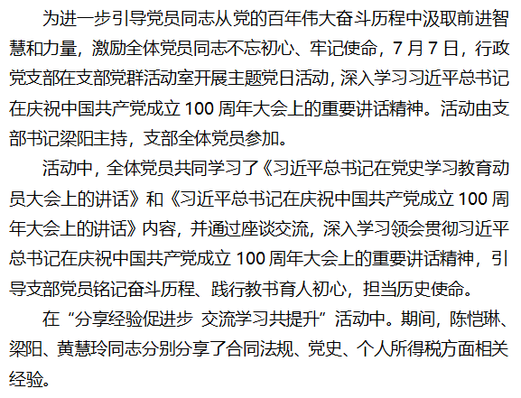 汲取百年智慧力量,践行党员初心使命 ——行政支部开展7月份主题党日活动