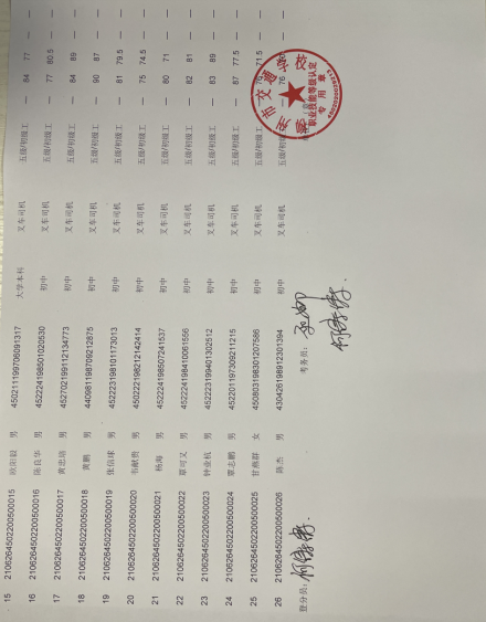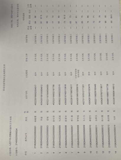 柳州市交通学校职业技能等级认定2021年二十五期叉车初级认定拟通过人员名单公示