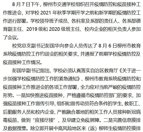 推进疫苗接种 守护校园安全 --柳州市学校召开疫情防控和疫苗接种工作推进会