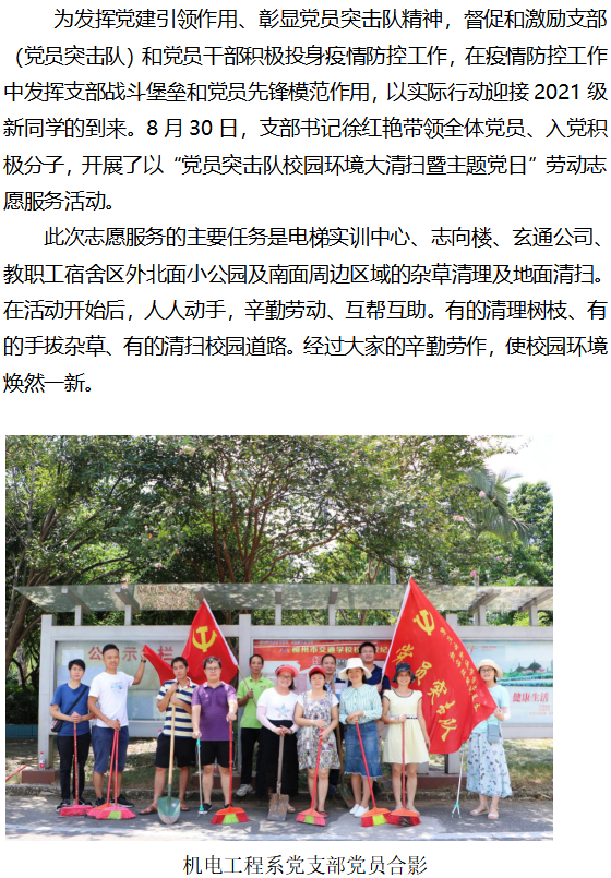我为群众办实事|机电工程系党支部开展“党员突击队校园环境大清扫暨主题党日”劳动志愿服务活动