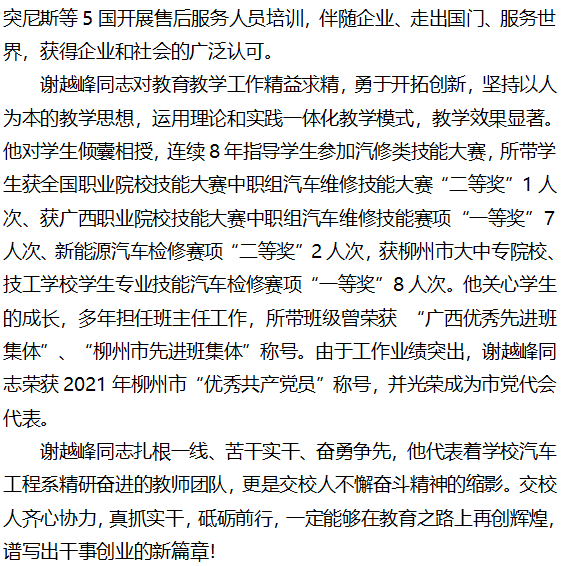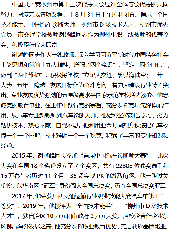 交通学校走出国门的汽车诊断大师 光荣成为市党代会代表