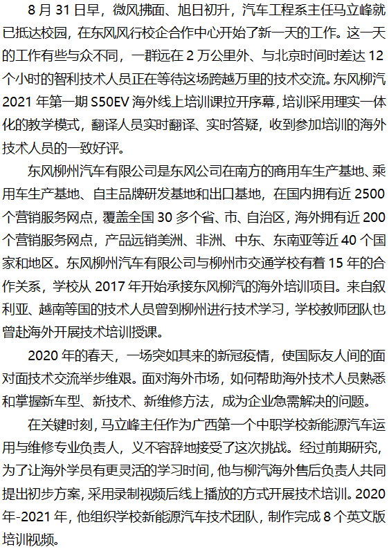创新的技术,疫情中的担当--柳州市交通学校马立峰主任为海外学员开展线上培训