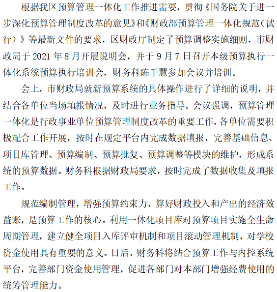 加强预算管理,规范资金使用--财务积极推进预算一体化工作