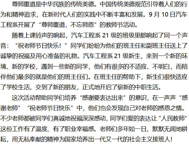 尊师重道,不忘师恩 --汽车工程系教师节感恩活动