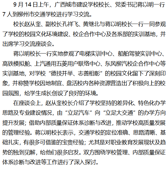 广西城市建设学校一行到学校进行学习交流