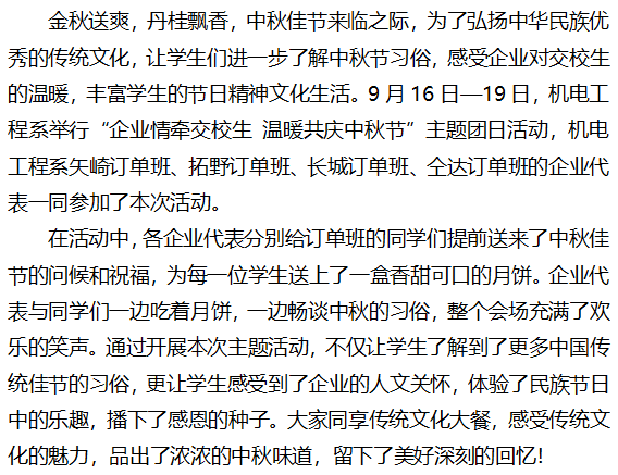 企业情牵交校生 温暖共庆中秋节企业情牵交校生 温暖共庆中秋节