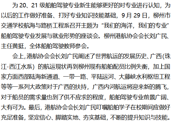 柳州市交通学校召开船舶驾驶专业发展与就业形势的座谈会