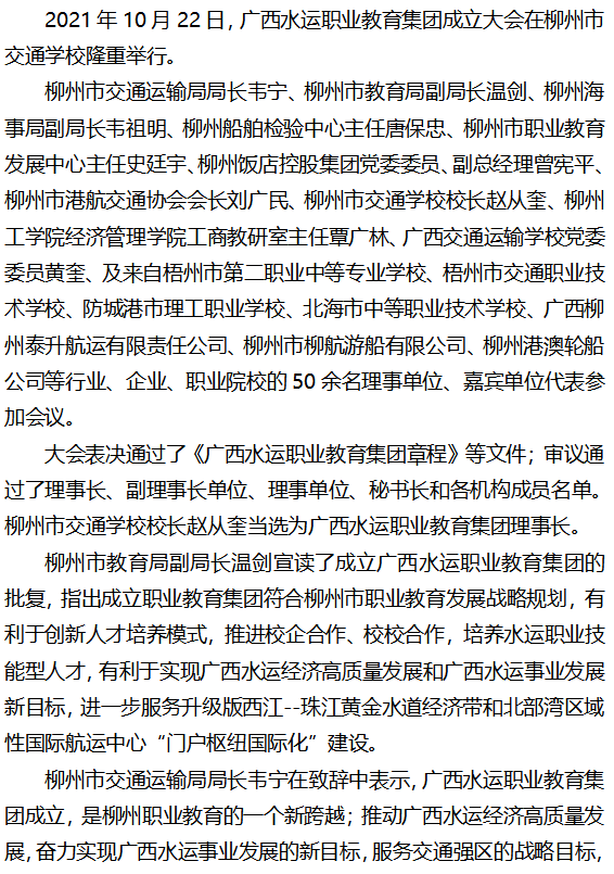 广西水运职业教育集团成立大会隆重举行