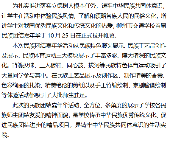 弘扬民族精神 传承民族文化 --柳州市交通学校举行民族团结嘉年华活动