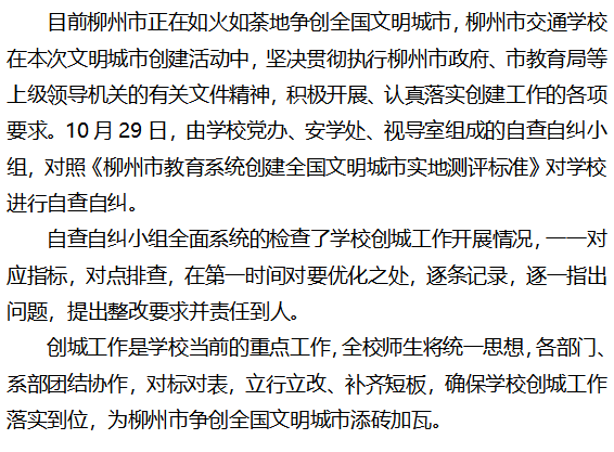 对标对表,自查自纠,为创城工作保驾护航