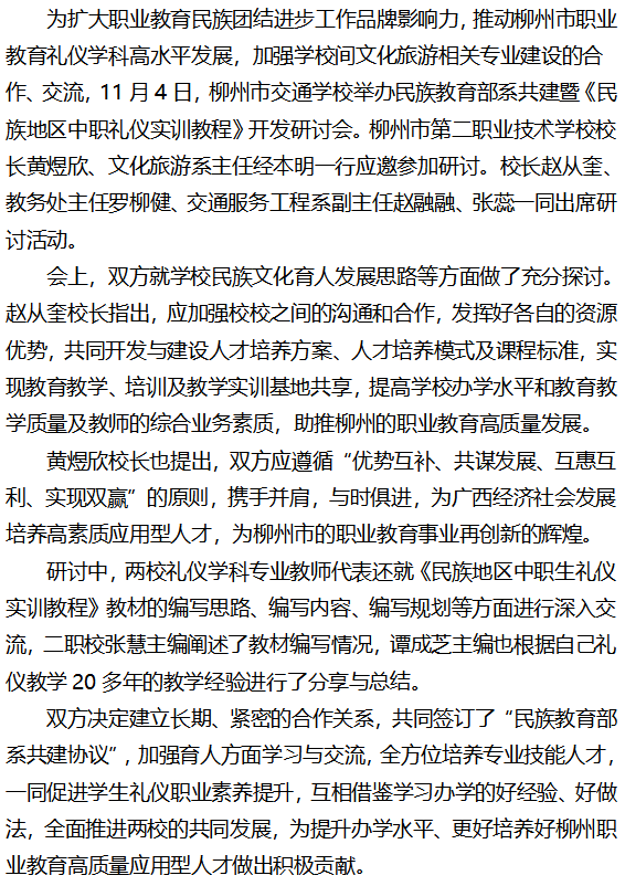 两校携手共发展 真诚交流促提升--柳州市第二职业技术学校到学校开展交流研讨