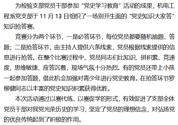 党史知识大家答|机电工程系党支部开展别开生面的“党史知识竞赛”活动