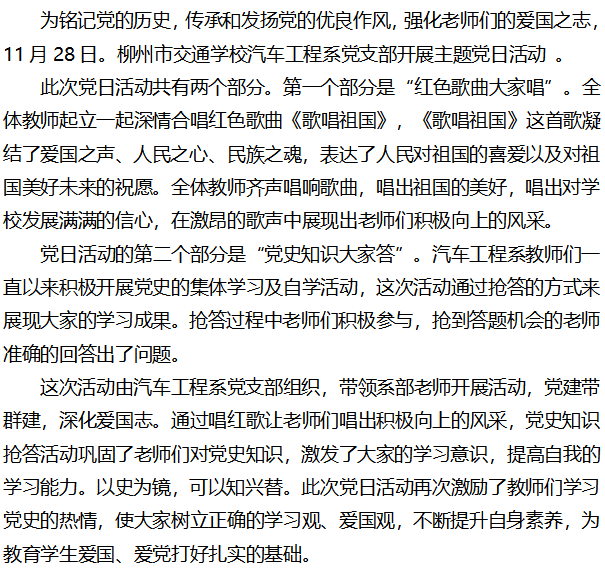 红色歌曲大家唱|柳州市交通学校汽车工程系党支部开展主题党日活动