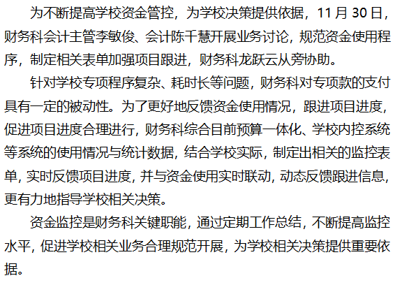 财务科不断提升项目资金监控水平