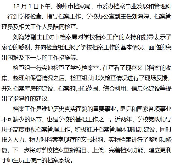 柳州市档案局到学校检查档案工作
