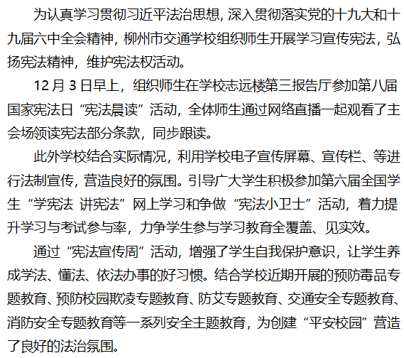 学习宣传宪法,弘扬宪法精神,维护宪法权 ——柳州市交通学校开展2021年“宪法宣传周”活动