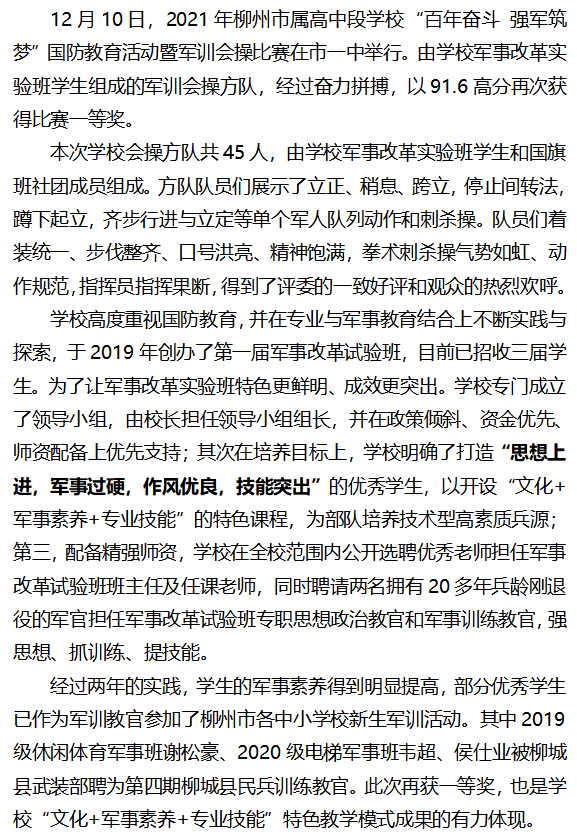 喜讯!柳州市交通学校蝉联柳州市属高中段学校军训会操比赛一等奖