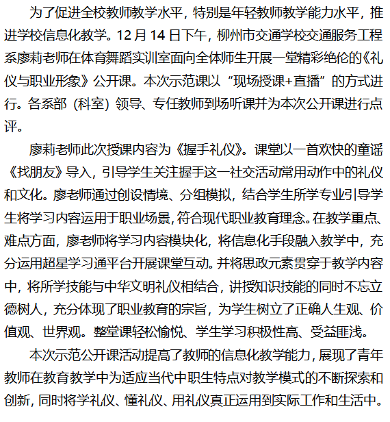 我为群众办实事|教学提质创新 推动职教育人 ——柳州市交通学校校级公开课