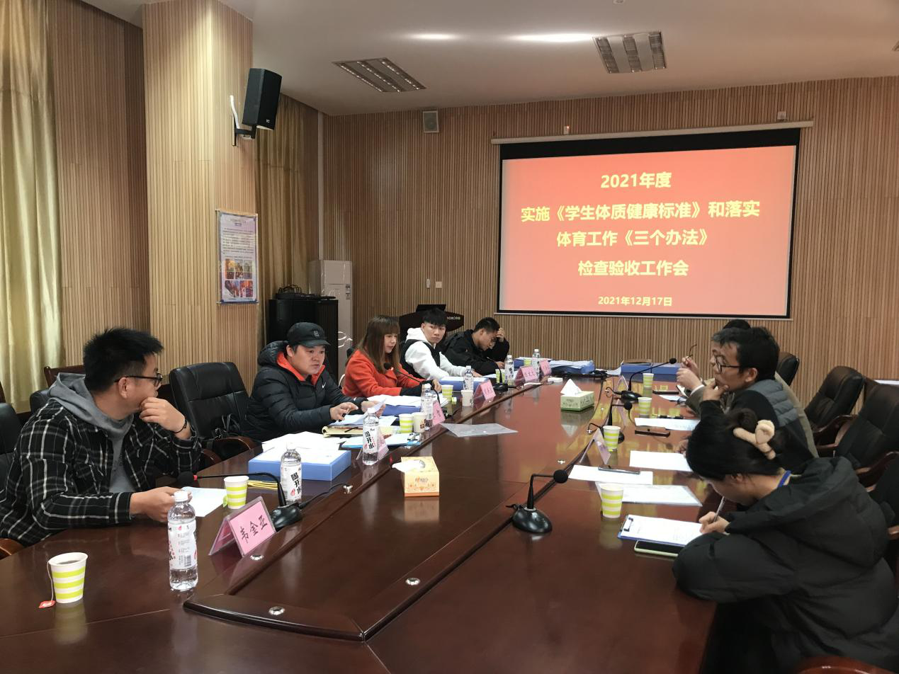 根据自治区施行《国家学生体质健康标准》和落实体育工作《三个办法》的通知,柳州市教育局对学校进行指导验收工作。12月17日上午,柳州市教育局检查小组来学校进行相关检查验收工作。会议由公共基础部副主任罗丹玫主持,黄继北副校长出席本次会议,体育组教师参加会议。