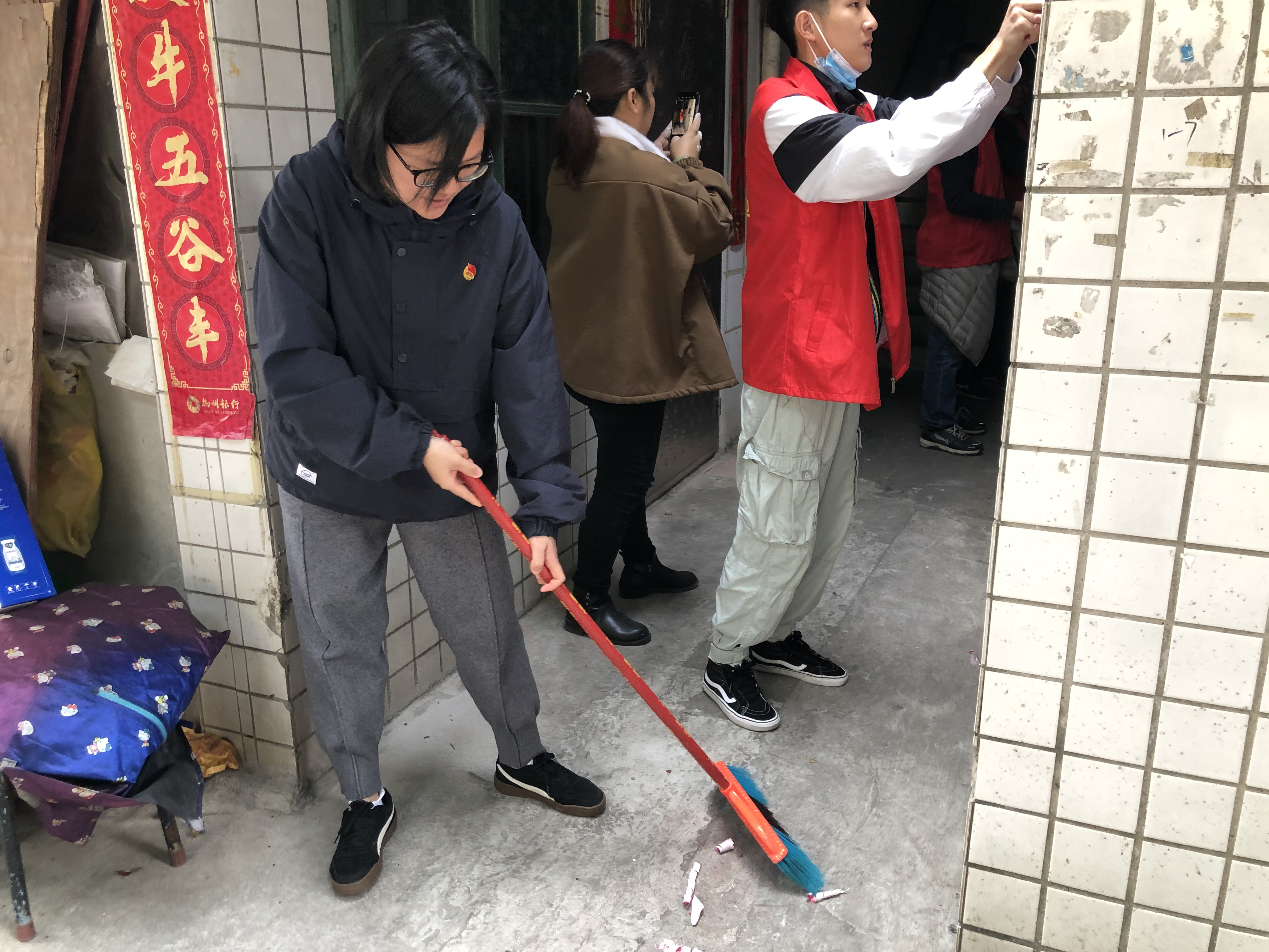 党员志愿者们扫地