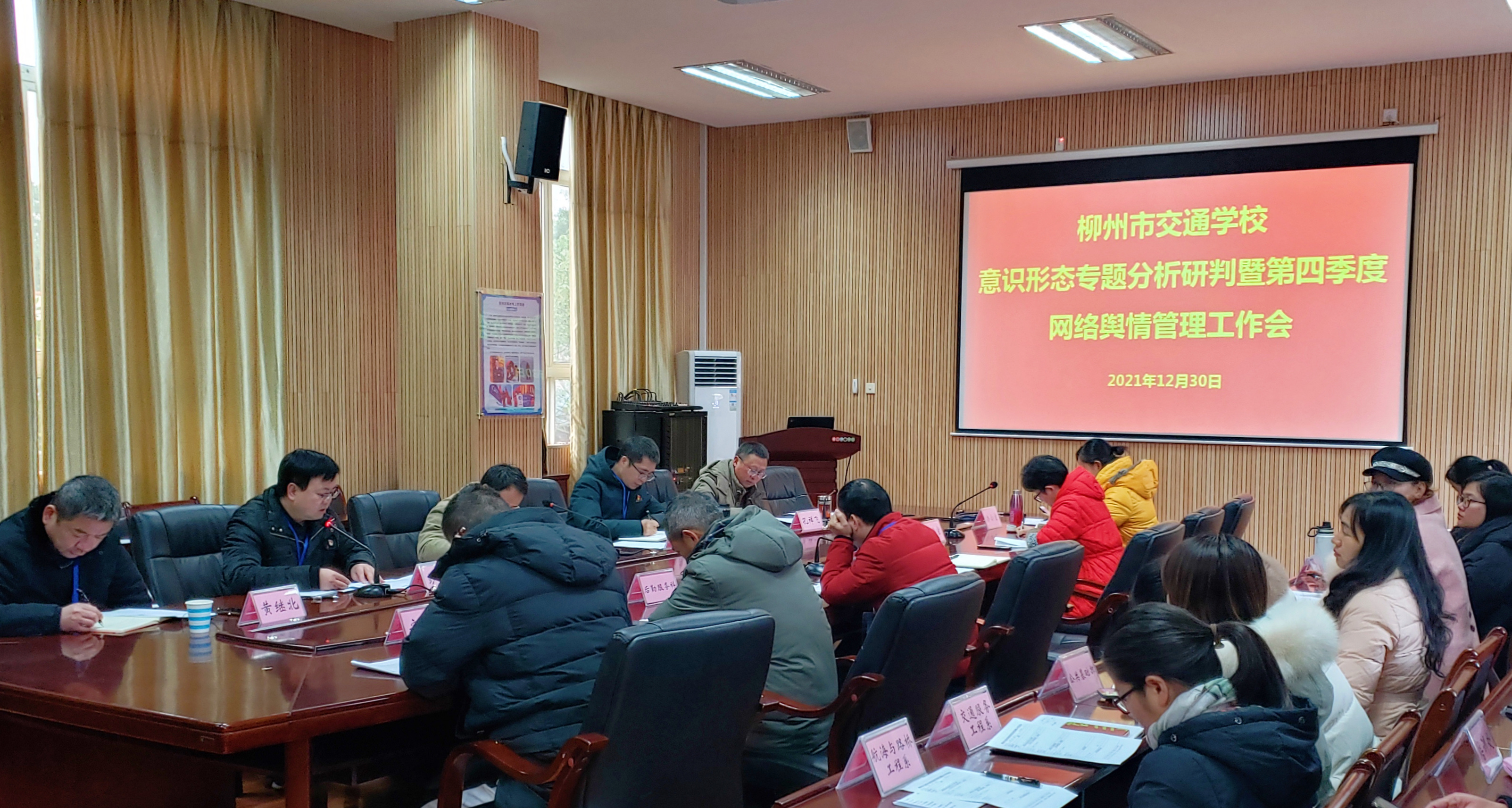 12月30日,柳州市交通学校召开意识形态专题分析研判暨第四季度网络舆情管理工作会,校领导班子、各支部书记、各部门负责人参加会议。
