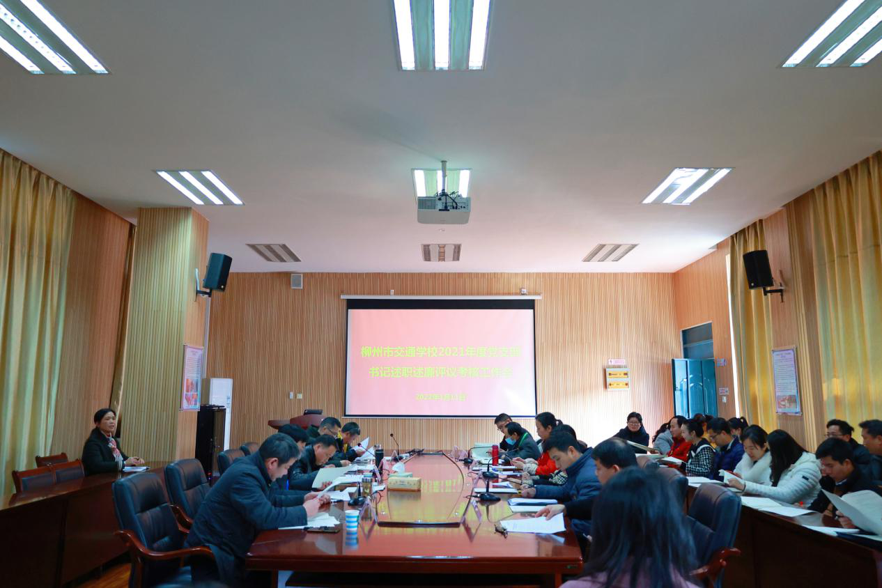 1月11日,柳州市交通学校召开2021年度党支部书记述职述廉评议考核大会。校领导班子成员、总支委员、党支部书记、支部委员、各部门负责人、党员及教职工代表参加大会。