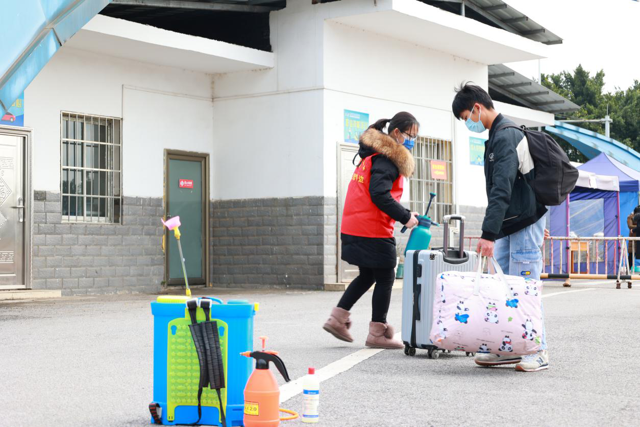 2月24日,党员志愿者们早早地等候在学校入口处,迎接同学们返校。党员志愿者们准备好了口罩、消毒液等物品,以饱满的精神状态投入到志愿服务活动之中。他们分工协作、井然有序,耐心地给同学们测温,亲切地引导同学们扫健康码、行程码,热心地帮助同学们搬运行李……这些温馨的场面成为了校园里一道靓丽风景线。