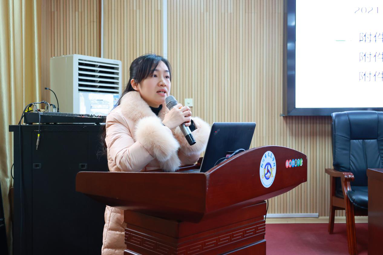 教务科研处主任潘雪玲对春季学期的教学要求、课堂思政等重点工作进行了解读。她指出,“课程思政”必须融入人才培养的全过程,全体教师应自觉挖掘蕴含在专业知识中的德育元素,做到思政与课程的相融合。2022年是学校的“教学质量提升年”,教务科研处将持续推进学校教育教学改革工作,完善学校人才培养方案。