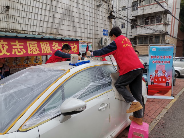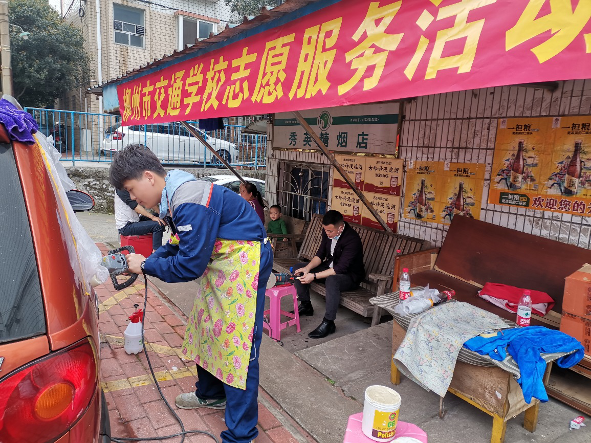 冉光迅老师带领学生进行汽车美容护理志愿服务