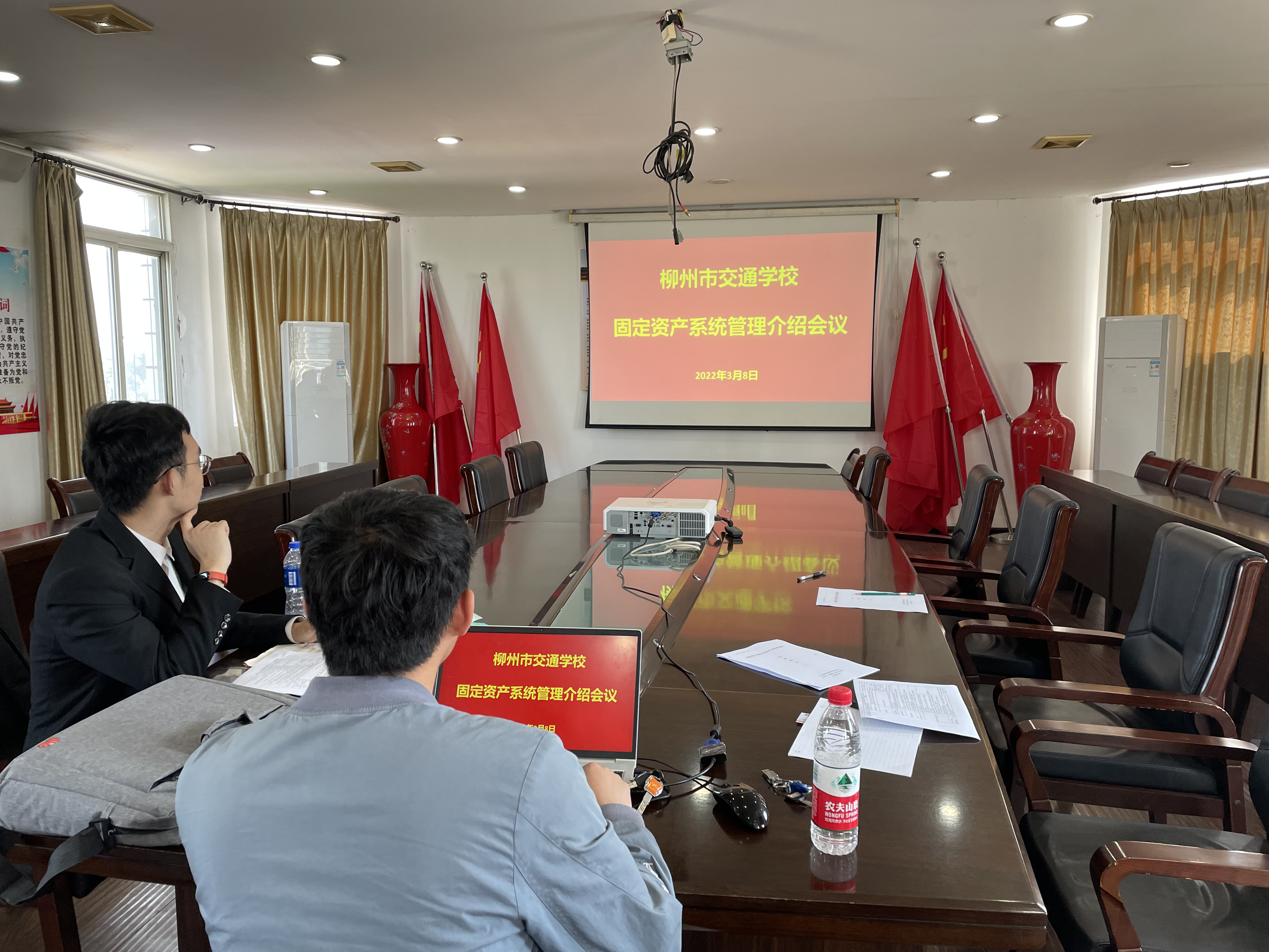为不断提高学校固定资产流转监控,进一步提高资产管理水平,3月9日,财基科联系业务公司,了解资产管理信息化手段的运用情况,对学校资产校内管控方式展开业务探讨。财基科科长黄伟、资产管理员出席会议。
