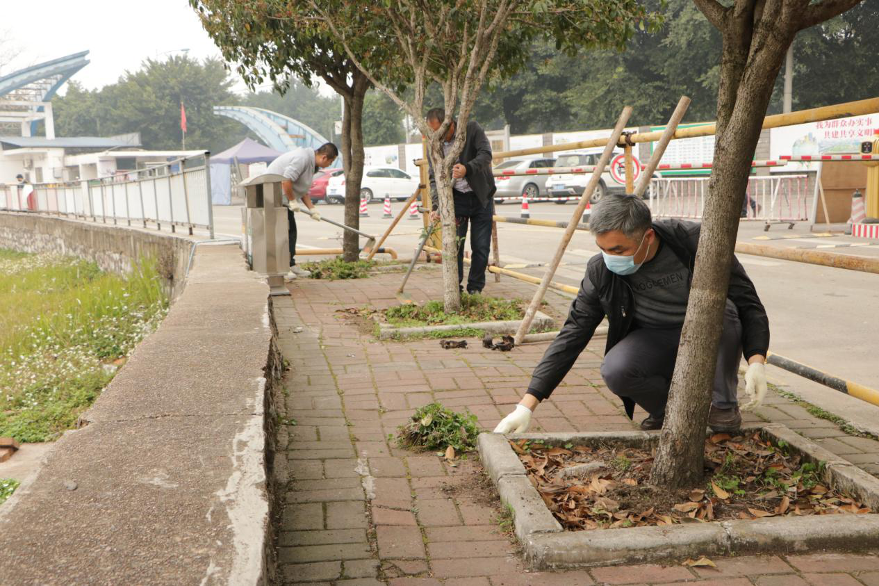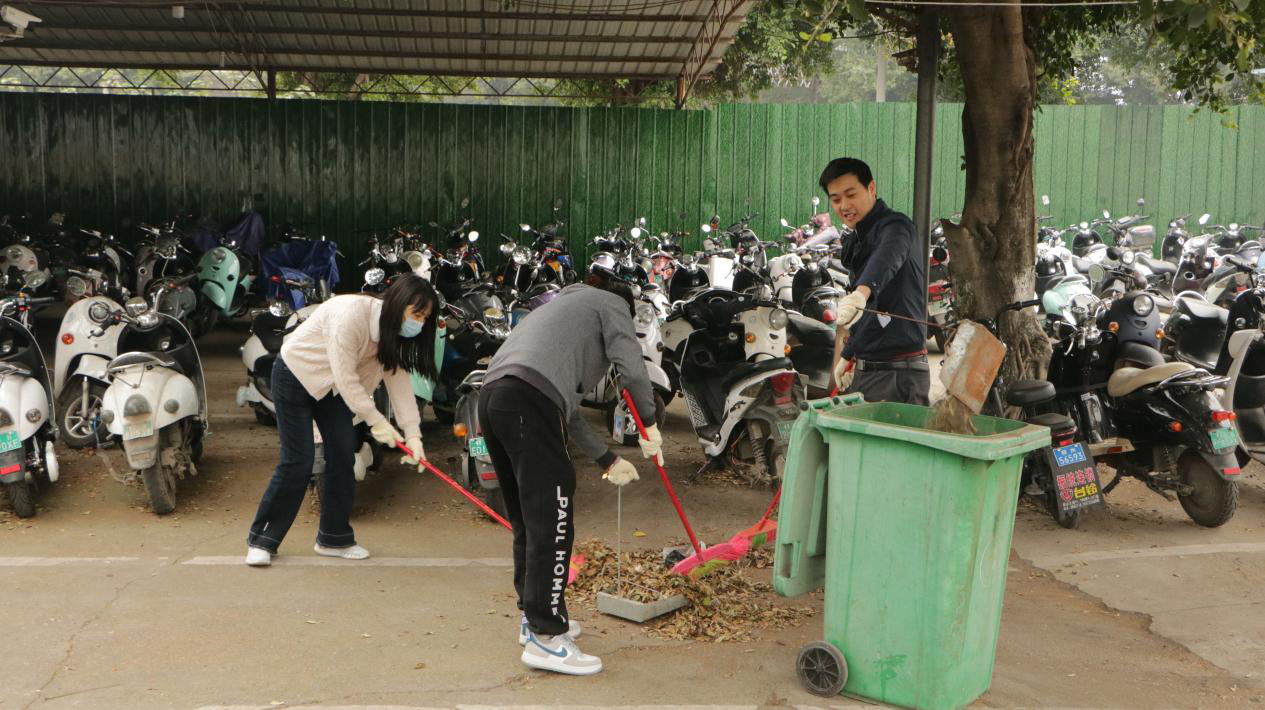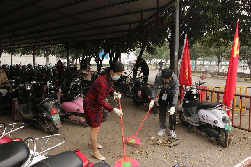 为响应学校党委号召,弘扬雷锋精神,为师生创建一个整洁、优美、舒适的校园环境。3月11日 ,行政党支部全体党员手拿着扫帚、簸箕、锄头等工具,在支部书记梁阳的带领下,对校园主干道和电单车车库等区域的开展清洁大行动,清除区域内的杂草和垃圾。