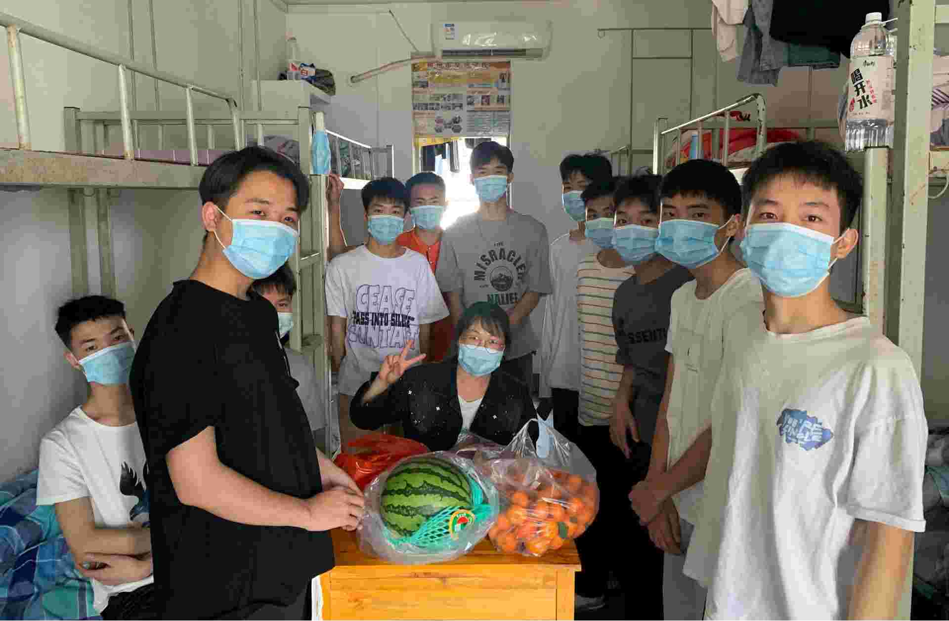 为了给学生补充维生素C,提高免疫力,鼓励学生积极锻炼身体,蒙繁荣老师带着新鲜水果进到宿舍。品尝水果的同时,蒙老师与学生 畅聊“三月三”的传统风俗,学生开心地交流起自己家乡“三月三” 的欢庆活动。