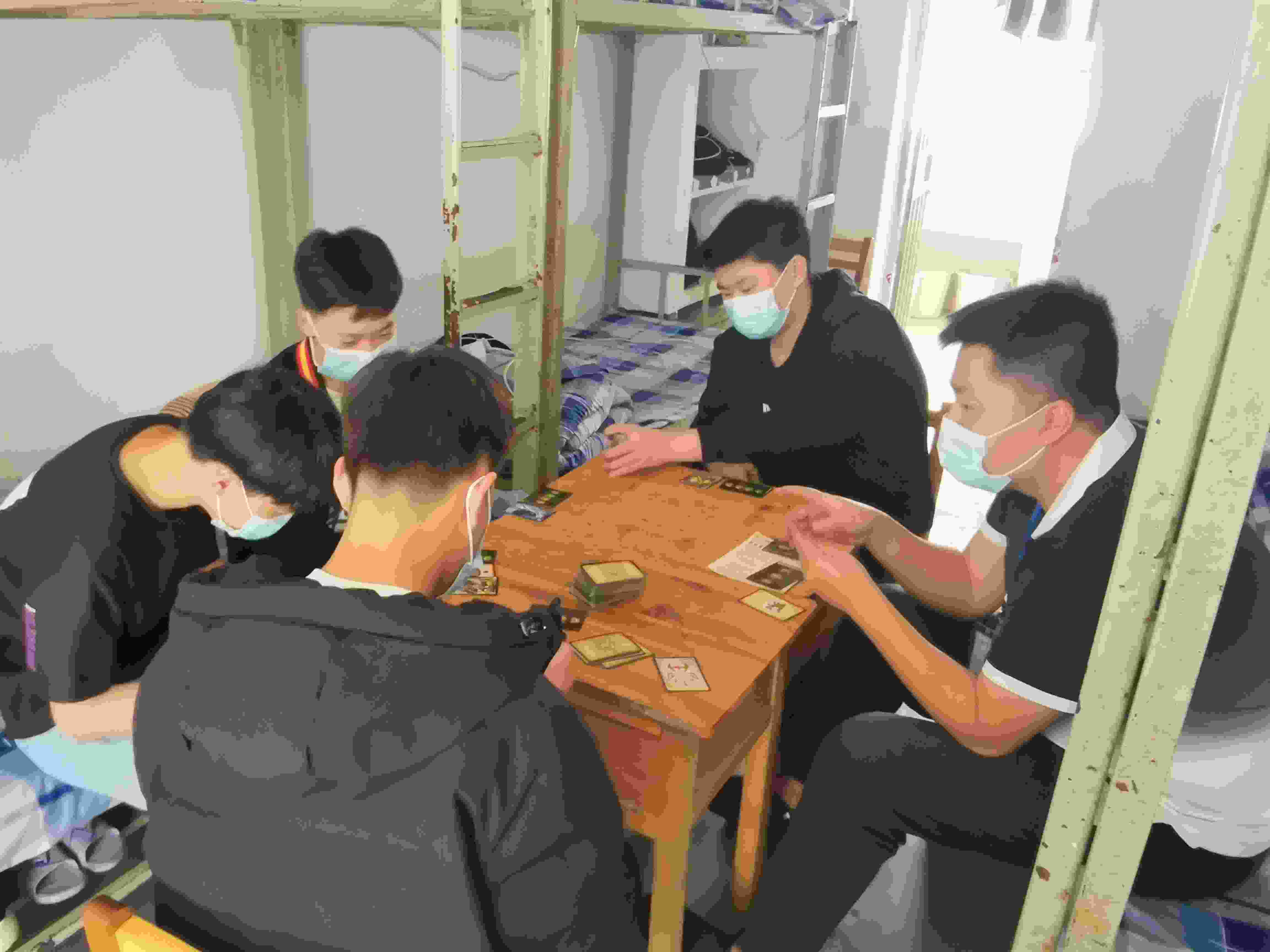 张翼老师和宿舍同学们玩转三国游戏,几张桌子一围便和学生打 成一片,其乐融融。学生通过游戏PK提高合作意识以及专注力,也拉近了师生彼此之间的友谊、默契。