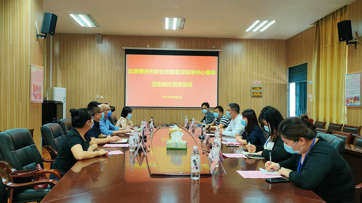 为进一步规范职业技能等级认定工作,4月8日,柳州市职业技能鉴定指导中心副书记李北荣、科室负责人范立立一行5人到学校开展专项督导工作。