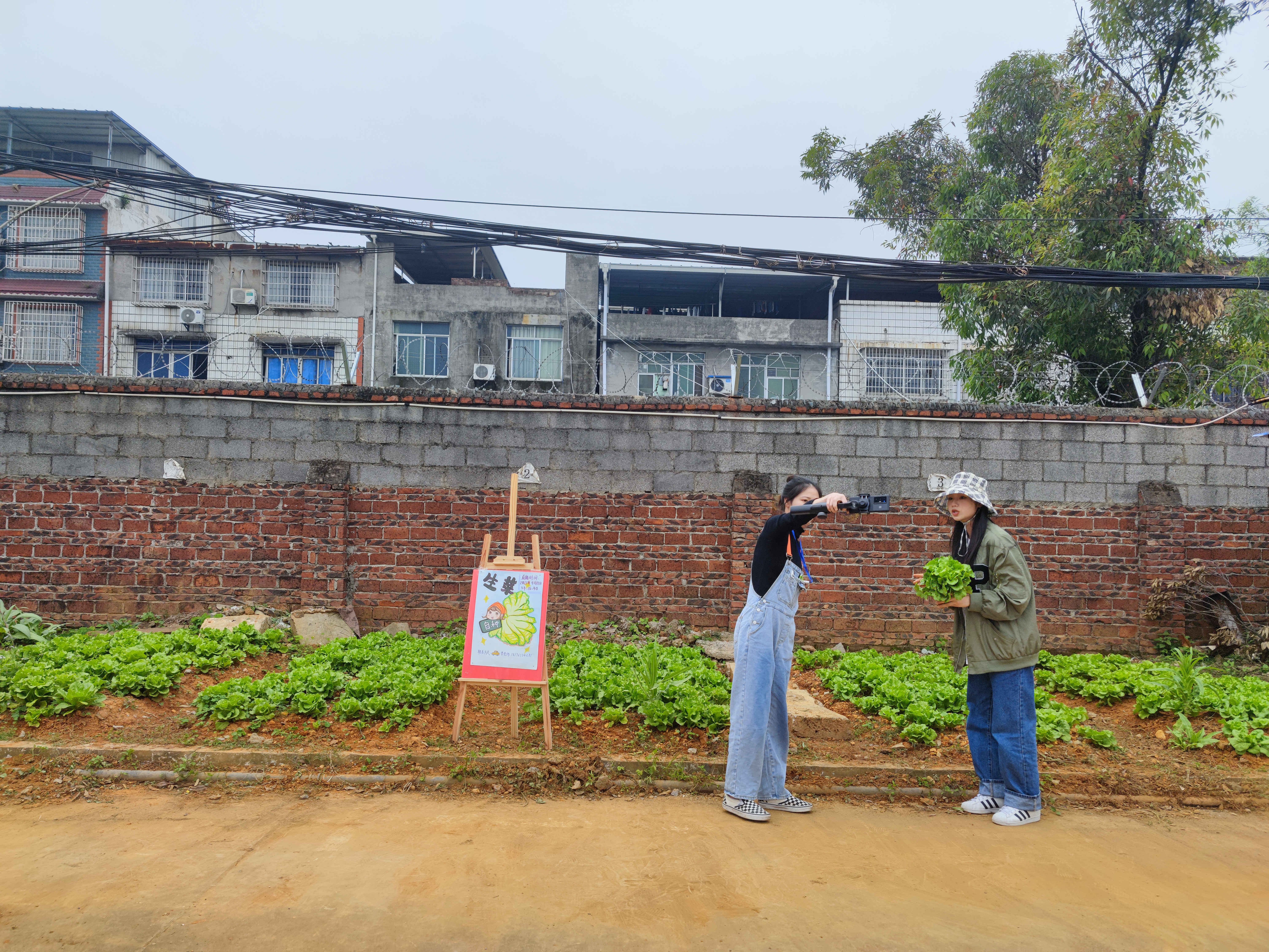本次蔬菜直播活动,师生们充分结合学校的专业特色,学以致用,在直播中迸发出创意的火花。20级特色艺术班的同学手绘了生动形象的宣传海报;汽车工程系的老师们开动脑筋,自制了“天平称”;物流电商专业的同学结合所学专业技能,开展现场直播卖菜。