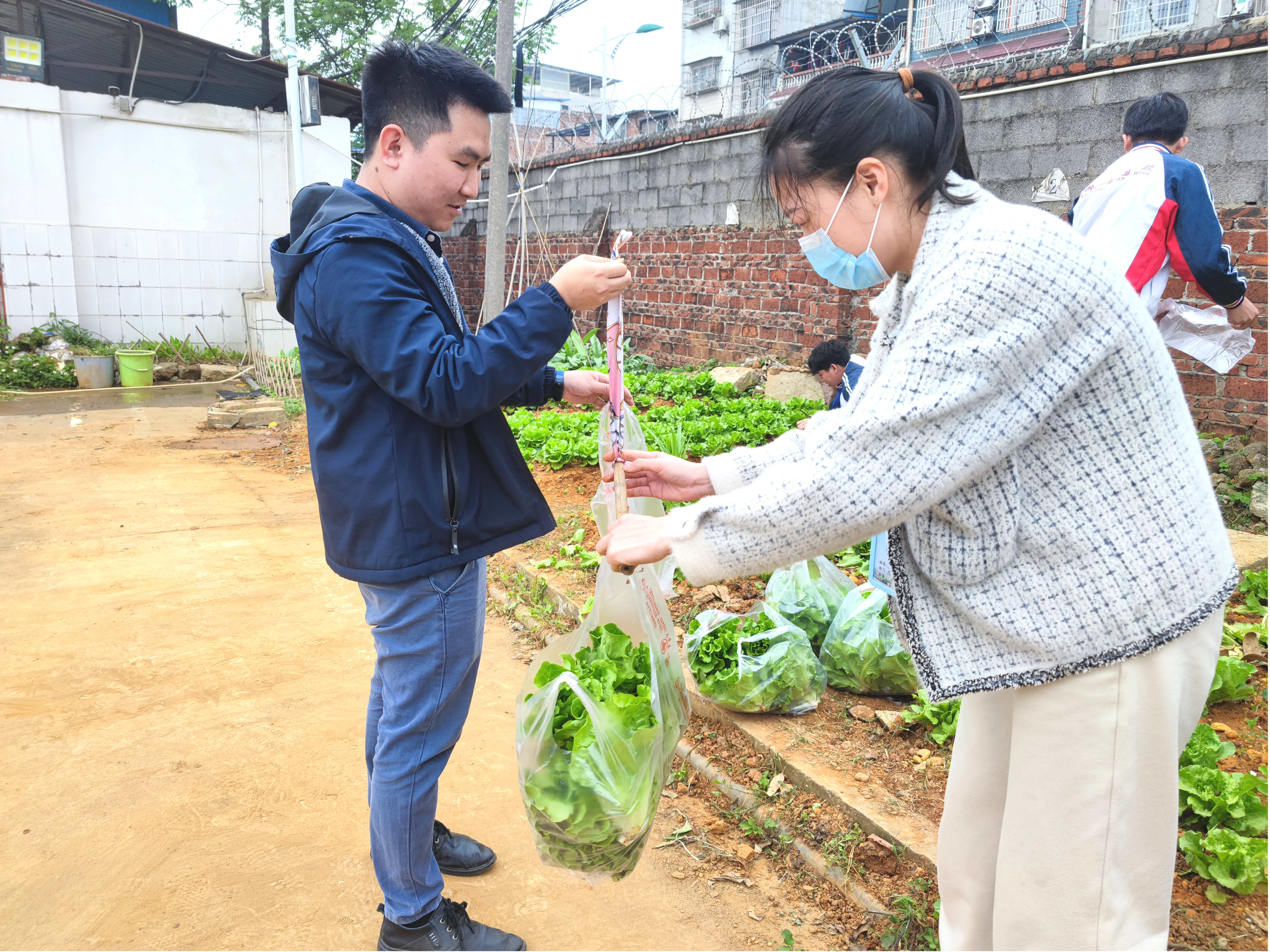 学生采摘新鲜蔬菜送货上门