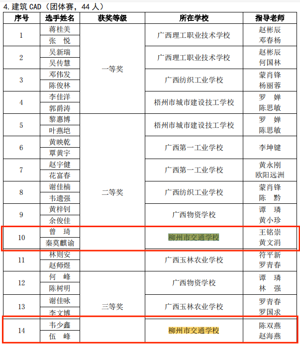 建筑CAD赛项学校获奖名单