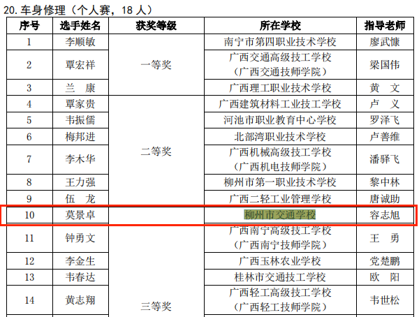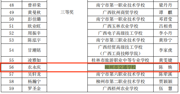 2022年广西职业院校技能大赛已圆满结束。经过激烈角逐,柳州市交通学校学生获得了优异成绩。