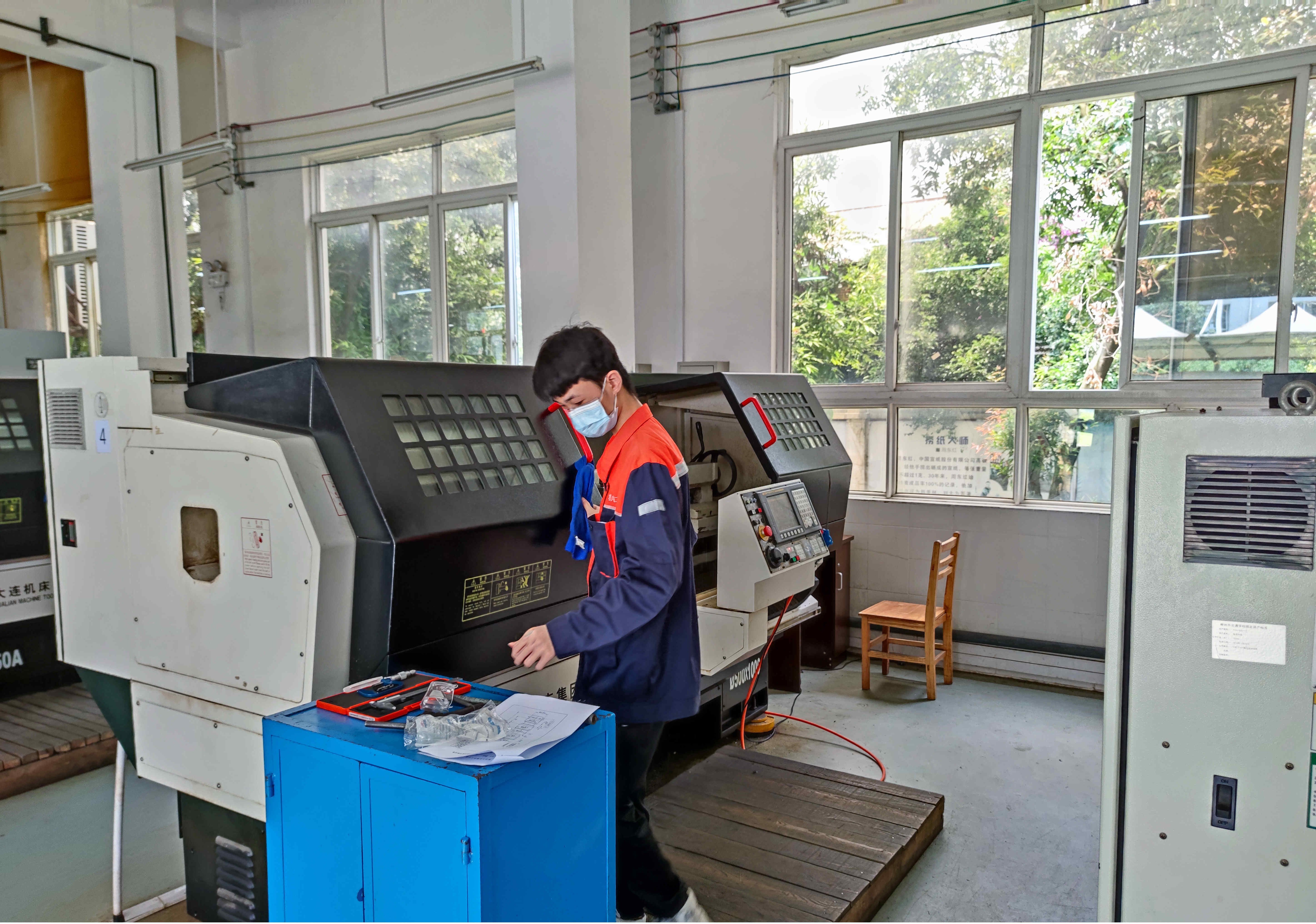 5月28日星期六早上,阳光明媚。机电工程系数控技术应用专业参加数控中级工认证考试的同学们早早来到了机加工实训基地实操考场,为即将开始的实操考试做准备。本次数控中级工考试有数控车工中级工和数控铣工中级工两个工种,共50多人参加考试。