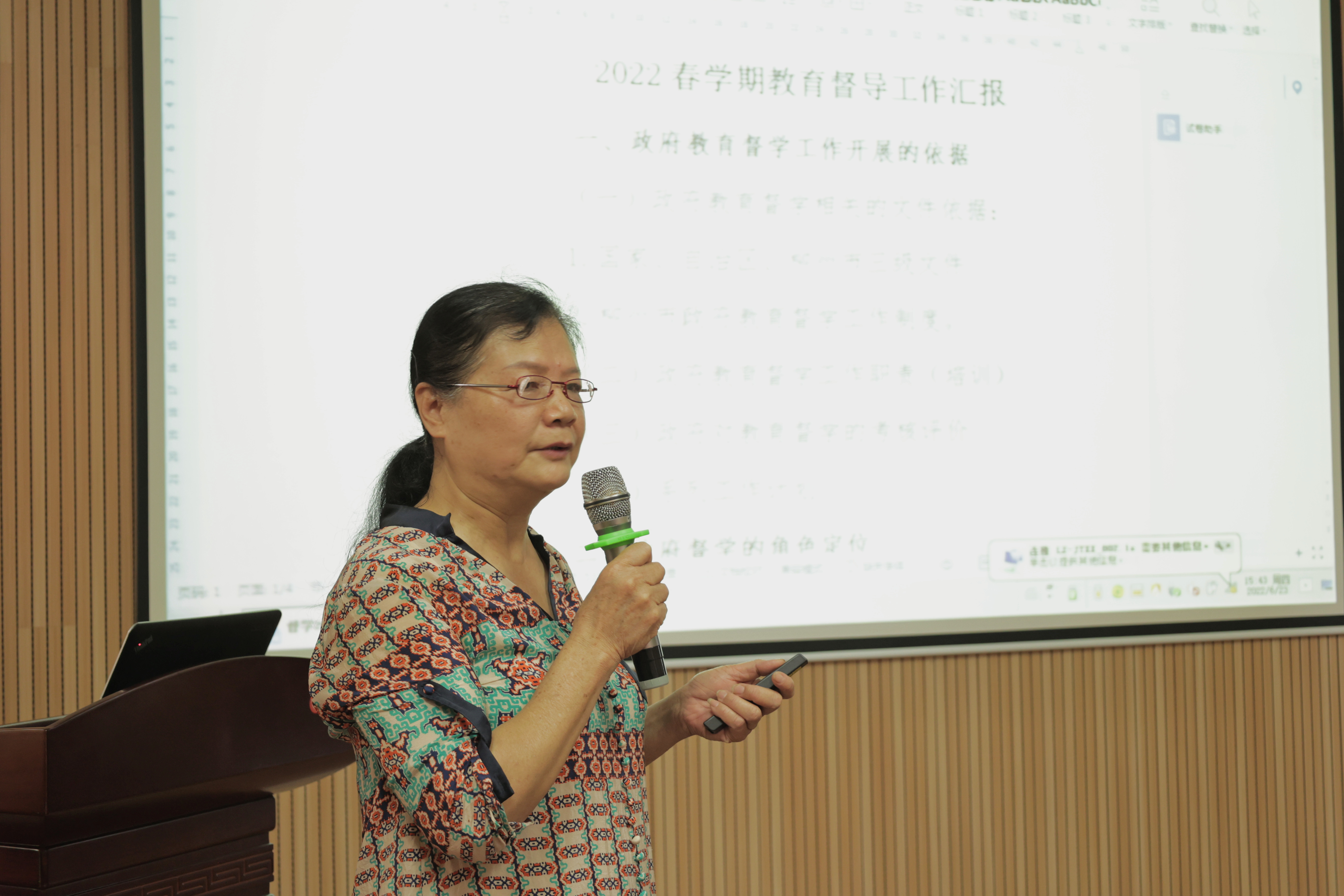 会上,纪检监察和视导办公室骆芳汇报了学校督导工作的开展情况。责任督学龙陵英就2022年春季学期开展教育督导情况进行反馈。她对学校的师德师风建设和德育工作、校园文化建设和教职工精神面貌予以充分肯定。她表示,政府教育督学角色定位于服务学校,助力学校办学规范、提升,充分发挥“第三只眼”作用,并对学校发展提出了建设性意见、建议。
