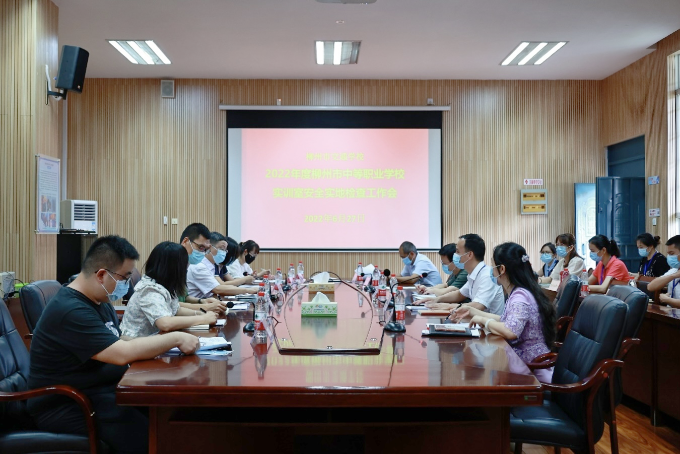 为深入贯彻落实党中央、国务院关于安全生产工作的决策部署和党的十九届六中全会精神,确保新冠肺炎疫情常态化防控中等职业学校实训室有序运行,保障广大师生人身安全和校园稳定,6月27日,市教育局专家组史庭宇、刘晶一行6人莅临柳州市交通学校开展2022年度柳州市中等职业学校(含区直驻柳学校)实训室安全实地检查。副校长彭国华、汽车工程系主任罗柳健及相关部门负责人参加迎检工作。
