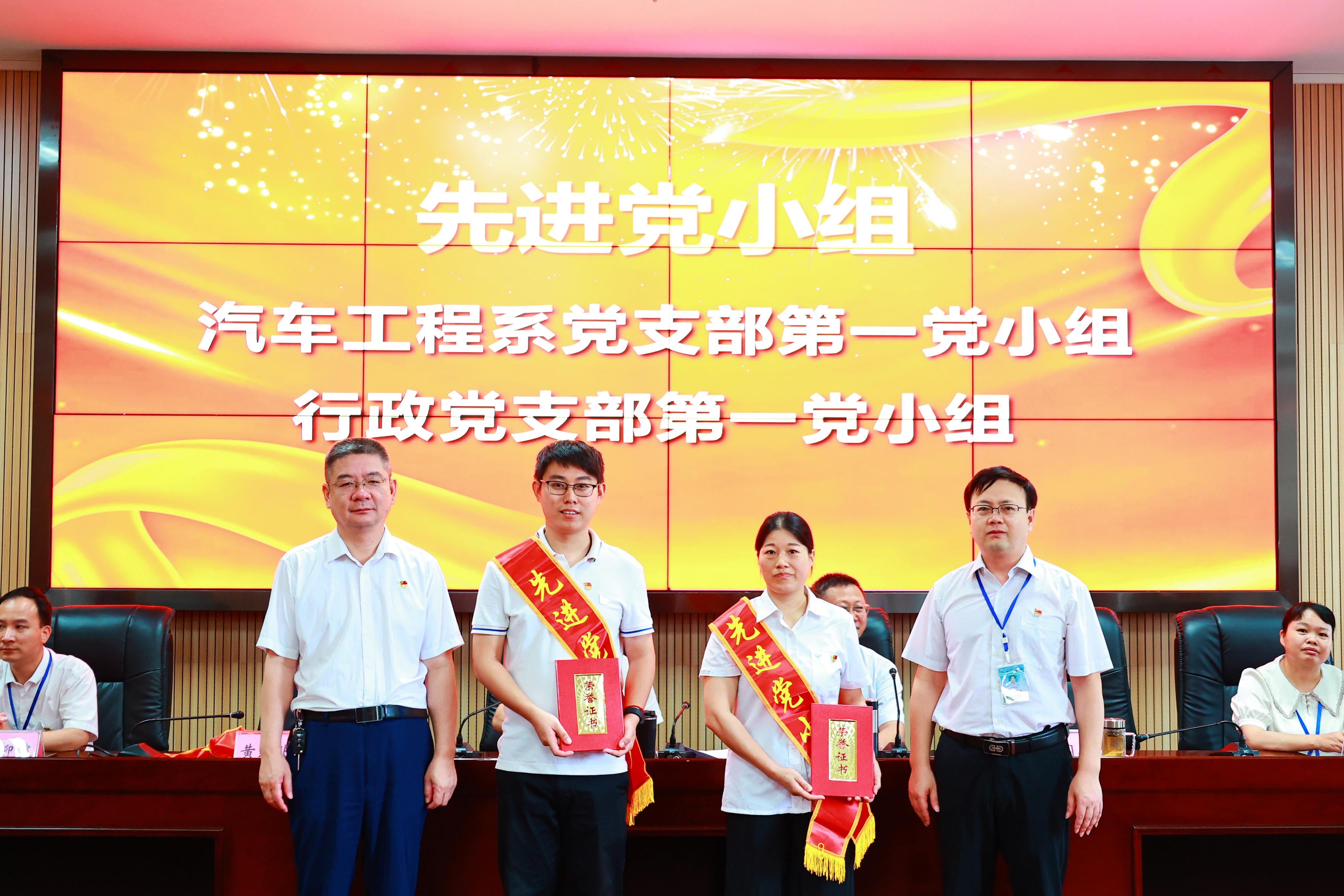 党委书记廖增勇宣读表彰决定,授予机电工程系党支部“先进党支部”称号,授予汽车工程系党支部第一党小组等2个党小组“先进党小组”称号,授予韦宇飞等 17 名同志“优秀共产党员”称号,授予张匡闽等5名同志“优秀党务工作者”称号。