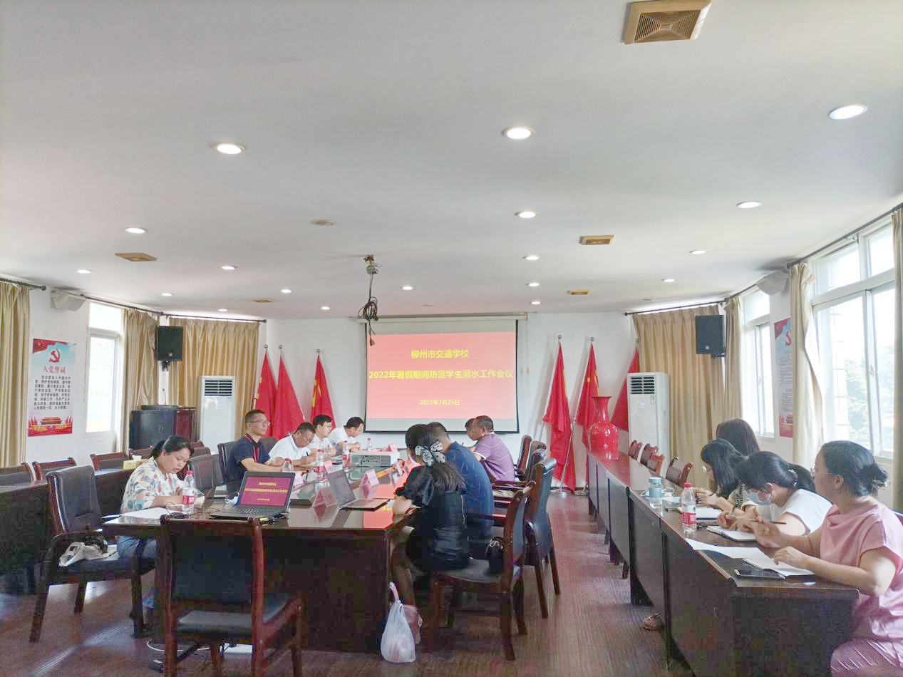 为贯彻落实柳州市防范中小学生溺水工作联席会议《关于印发<2022年柳州市防范中小学生溺水大排查大整治工作方案>的通知》的通知精神,按工作方案要求部署学校日常化加强防溺水各项工作,坚决防范遏制学生溺水事件发生。7月25日下午,柳州市交通学校召开2022年暑假期间防范学生溺水工作会议。会议由副校长彭国华主持,学校党委书记廖增勇、党委副书记孔祥飞、副校长彭国华和相关部门负责人参加会议。
