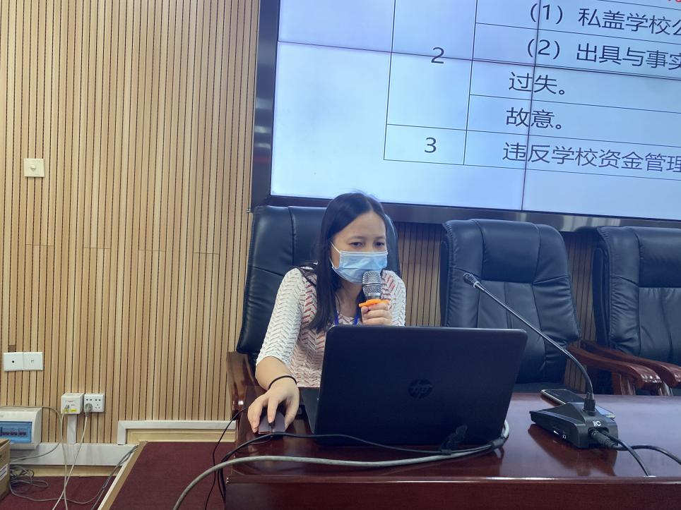 李秀凤主任解读了《柳州市交通学校工作失职和责任事故认定及处理办法(试行)》,深入规范新教师从教行为,提升新教师的综合素质。