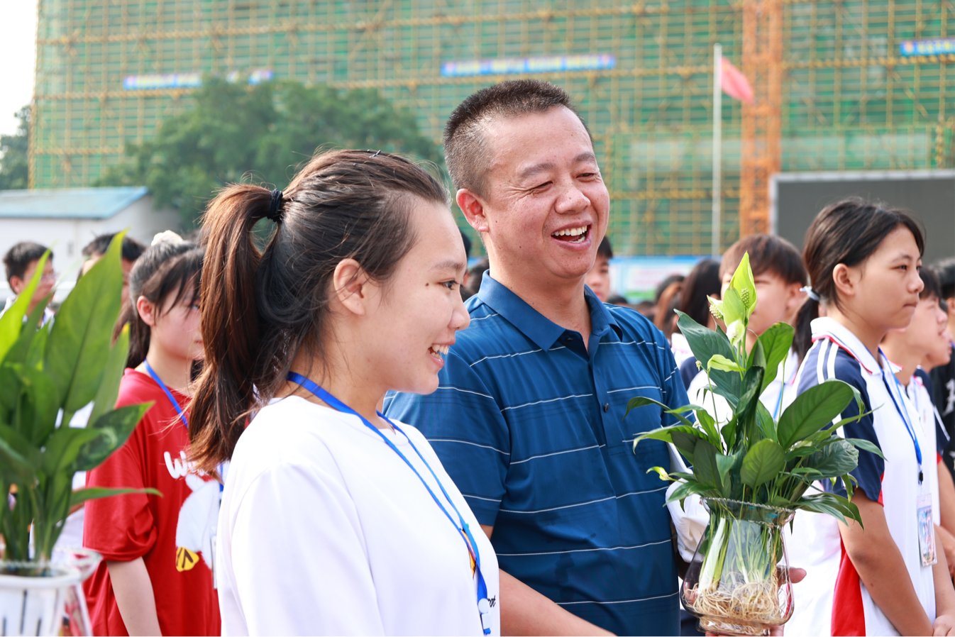 学生给老师们送盆栽