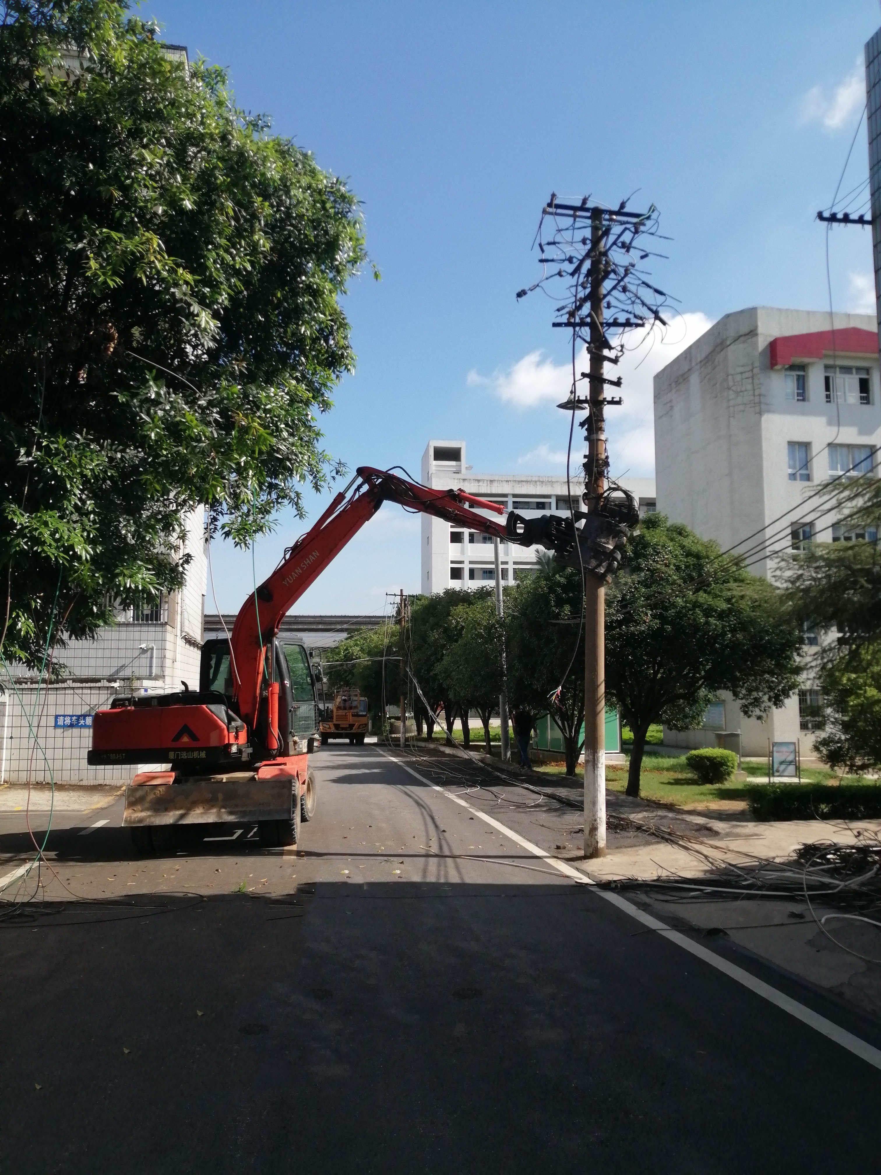 弱电线路整治是柳州市创建全国文明城市的重要内容之一,也是优化城市环境的重要举措。今年以来,学校重点关注校风校貌的提升,对整治校园“蜘蛛网”提出了重要的指示。在此基础上,财基科利用暑假的时间清理“蜘蛛网”,消除安全隐患,弱电线路整治取得阶段性成效。