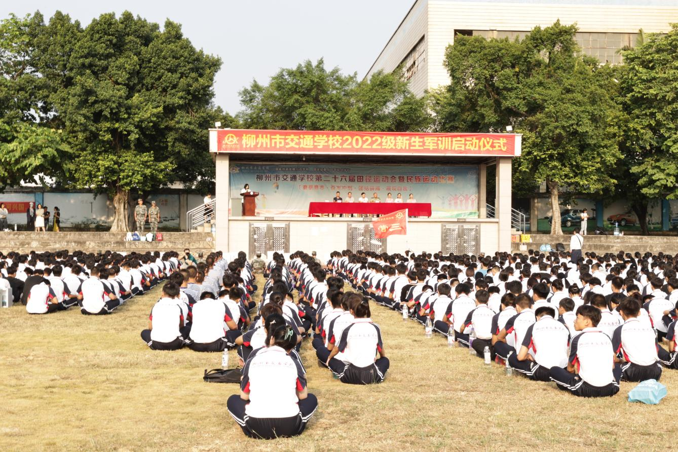 2022年9月24日,柳州市交通学校2022级新生军训启动仪式在操场举行。宽阔的绿茵场上,全体2022级新生集结在此,军容严整,士气高昂。新的旅途,在此刻启程!