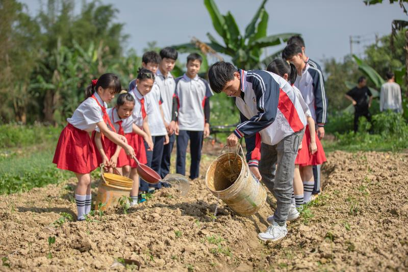 学校积极组织学生劳动实践,种植花草蔬菜,在专业教师的带领下让学生在亲历的学习过程中快速成长。在日常生活中,学校要求学生做到“三随手”,即随手收捡废纸、随手关闭电源、随手关闭水龙头。同时狠抓教室“四化”落实工作,即教室净化、室内绿化、窗帘悬挂规范化、物品摆放条理化。