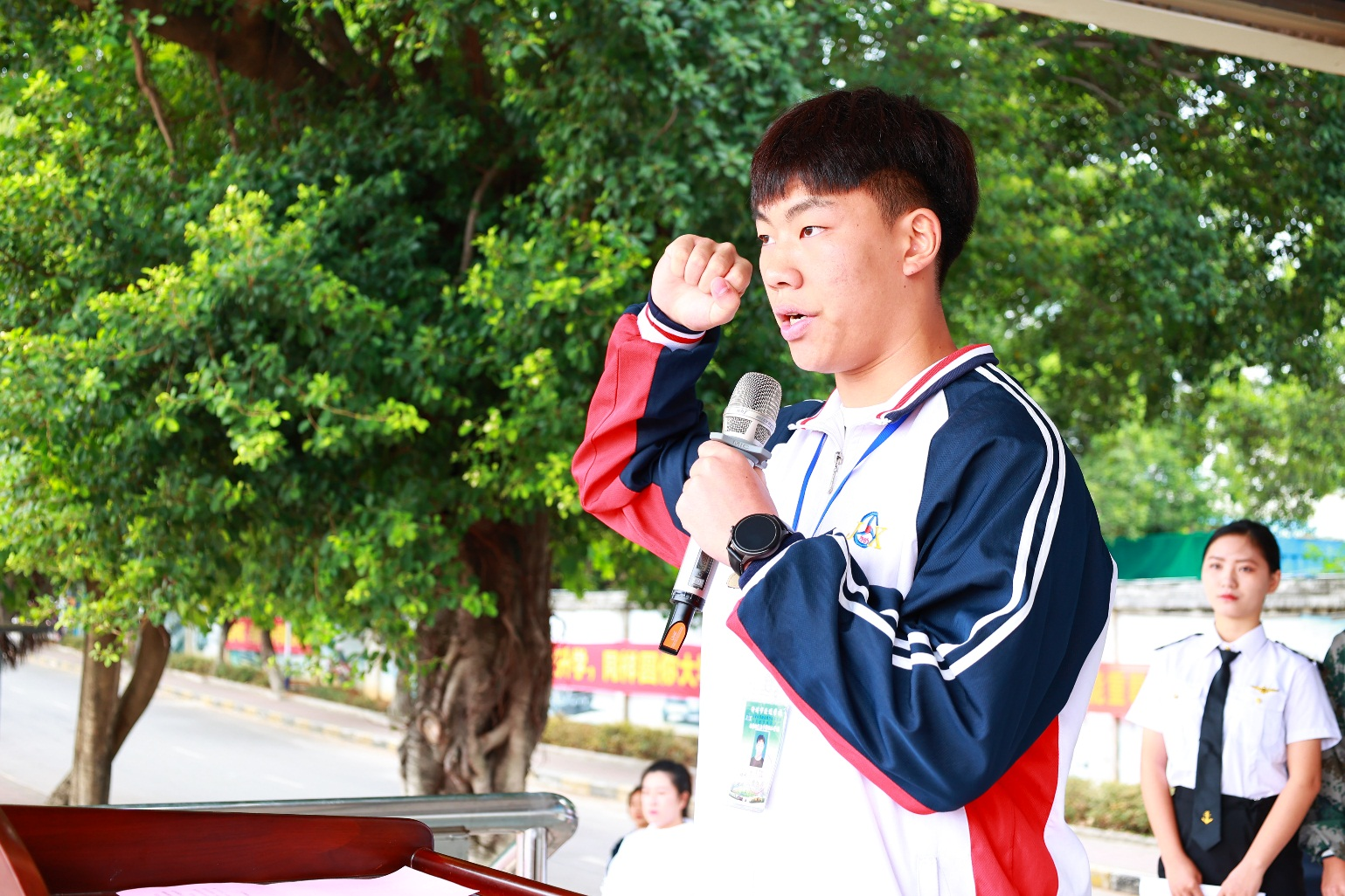 在庄严的音乐声中,国旗班的队员们举着国旗、校旗首先入场。他们昂首挺胸,笑容舒展,整齐铿锵的步伐,踏出了自信和青春。